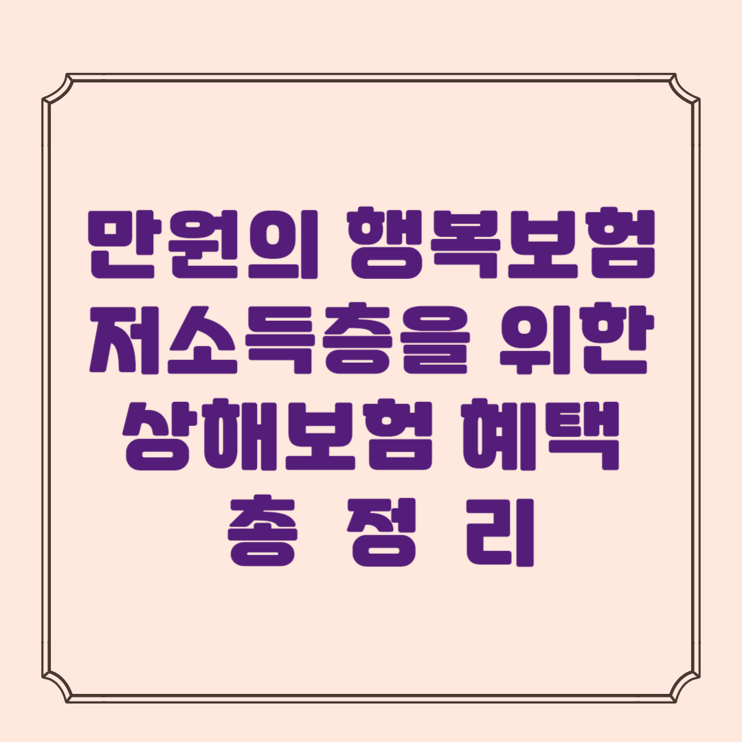 만원의 행복보험은 저소득층을 위한 중요한 사회적 안전망 역할을 합니다. 보험료 부담이 적고, 상해에 대한 다양한 보장을 제공하므로, 경제적 여력이 부족한 가구에 큰 도움이 됩니다. 간단한 신청 절차를 통해 저소득층도 쉽게 가입할 수 있으니, 자격 요건을 확인한 후 가입해 보시기 바랍니다.